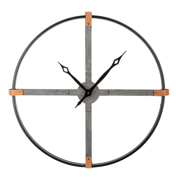 Round Wall Clock with Faux Leather Detail